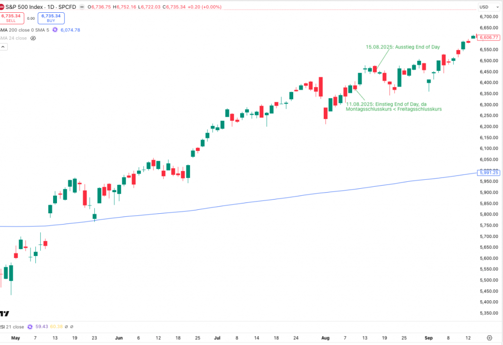 Backtests zeigen, dass diese einfache Regel über längere Zeiträume eine positive Durchschnittsrendite erzielt hat, insbesondere in Bullenmärkten.
